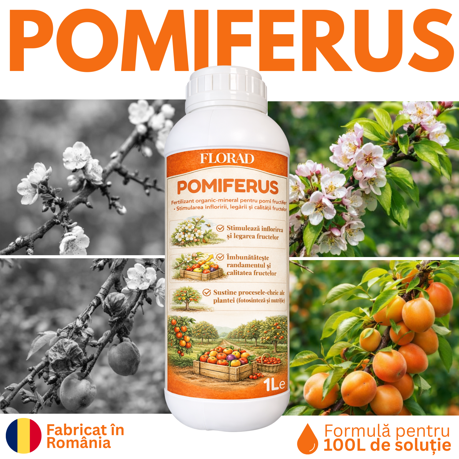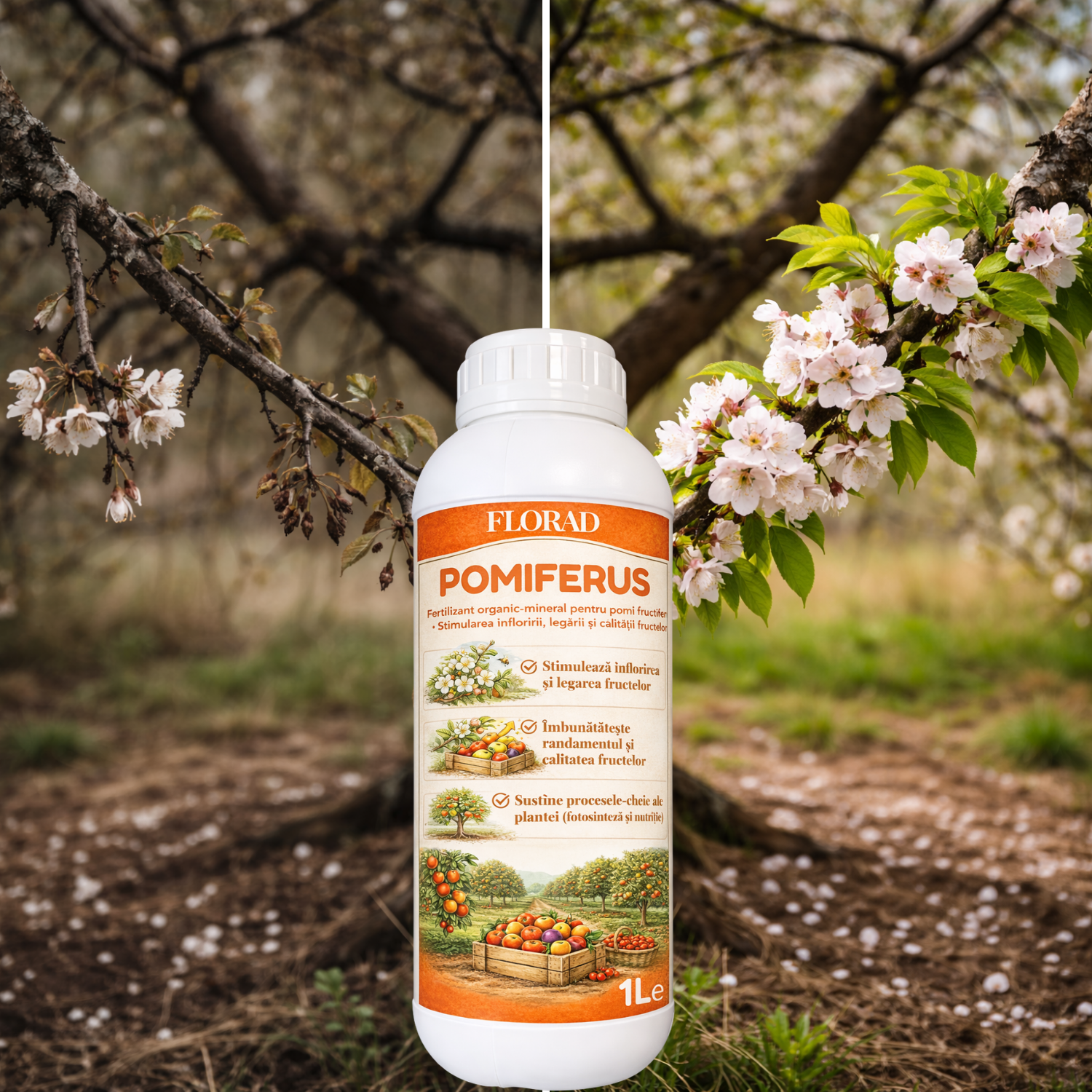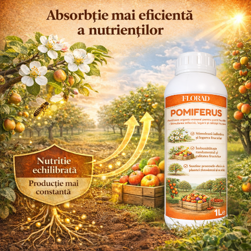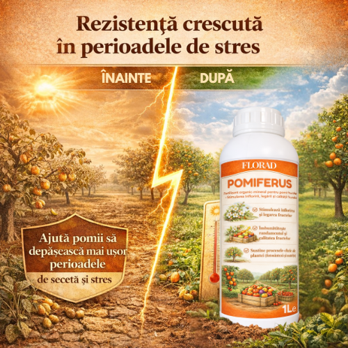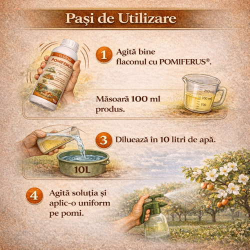 POMIFERUS® nu este un produs fitosanitar și nu acționează prin combatere directă. Formula sa susține procesele fiziologice interne ale pomilor și contribuie la dezvoltarea echilibrată a culturilor.
