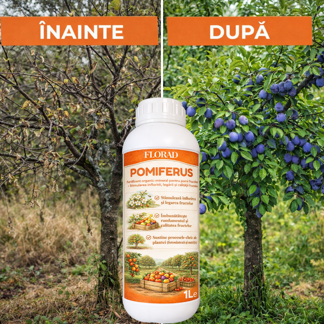 Aplicarea POMIFERUS ajută copacii fructiferi să își activeze metabolismul, să stimuleze inflorirea, legarea si calitatea fructelor.