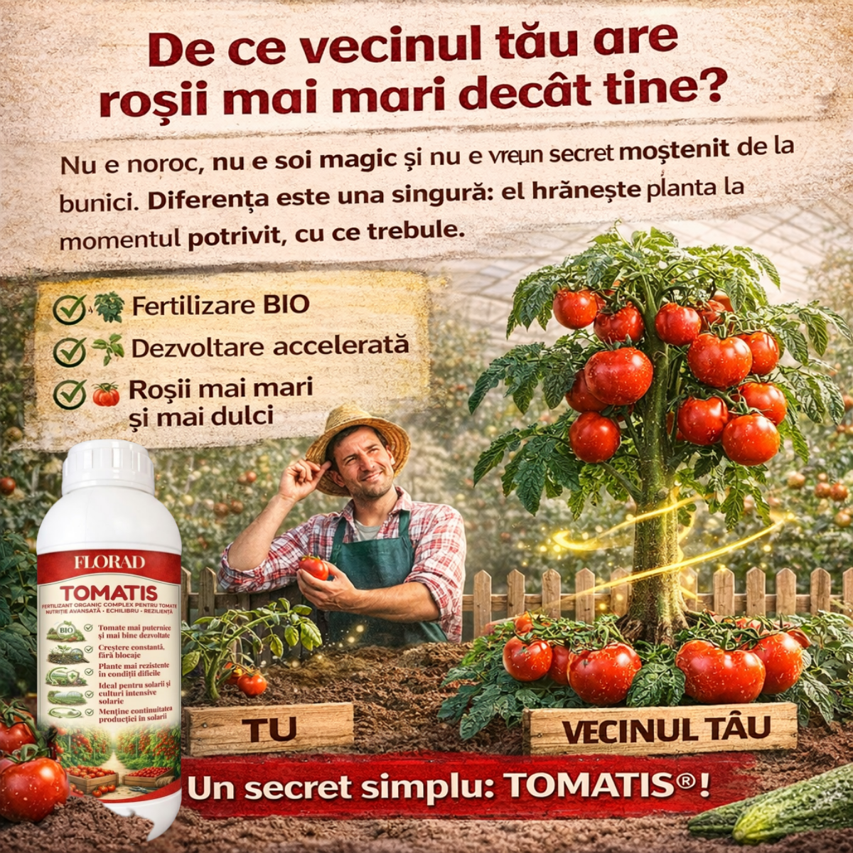 • Folosesc Tomatis atât în grădină, cât și în solar, și sunt mulțumit de cum evoluează culturile. E simplu de aplicat și își face treaba.